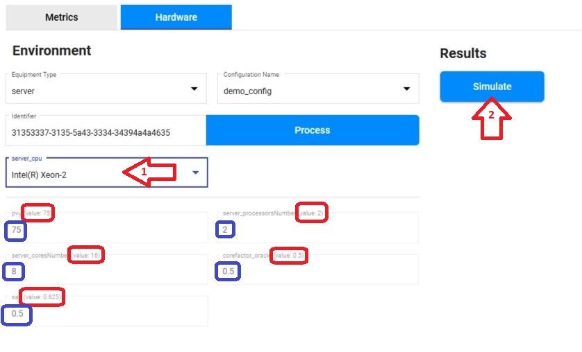 - The values of the "server_cpu" selected for the simulation (e.g : Intel Xeon-2)