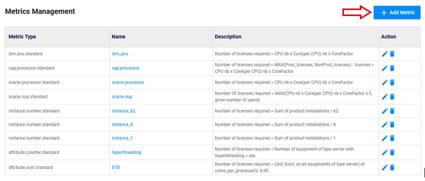 - Other attributes : All of the other attributes are changing depending on the metric type, they are used to obtain the values of the formula (e.g : "Core" represents "Core(perCPU) nb" in the formula, "CPU" represents "CPU nb" in the formula). All of these attributes are equipment attributes